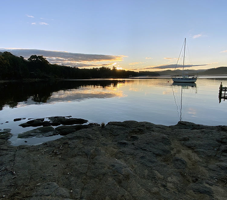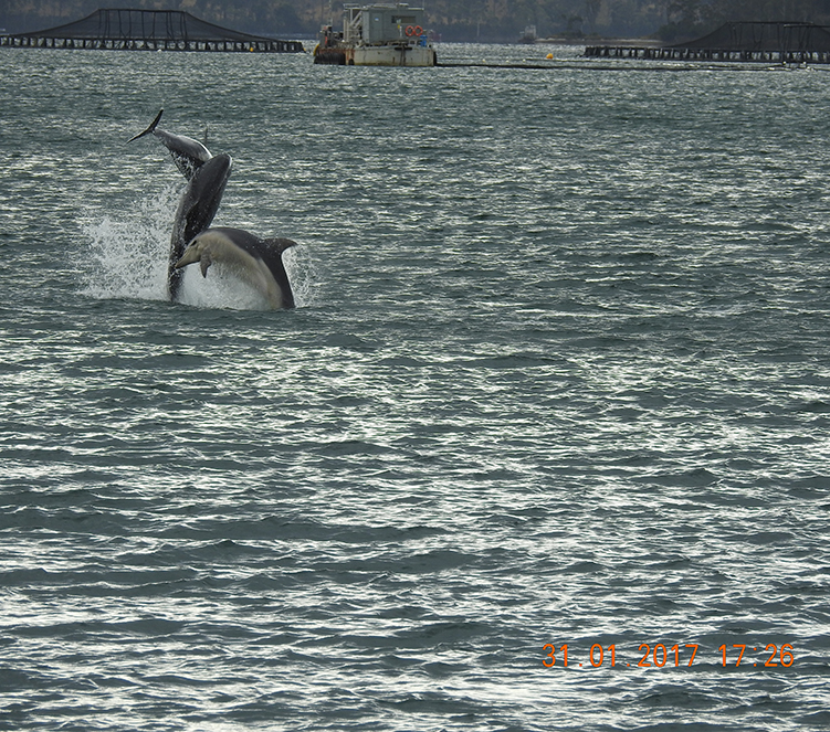Huon Valley accommodation images, taken at self contained accommodation in the Huon Valley at River Road Chalet, Surges Bay in the far South of Tasmania. Recently a hump back whale was spotted playing in the waters. The local salmon farm cages can be seen nearby with boats going to and from the farm throughout the day. A salmon outlet shop is only about 10 minutes down the road. Flathead and bream can be caught in the Huon river.